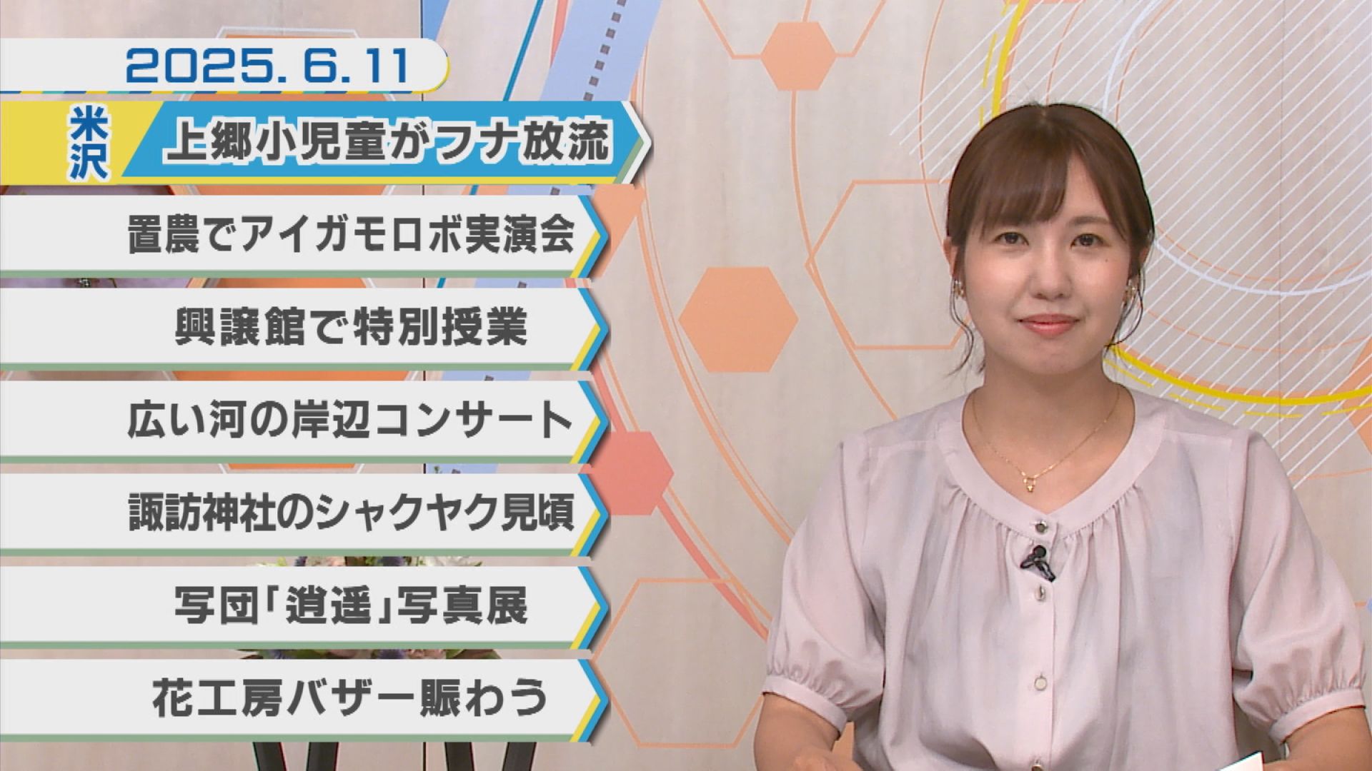 6月11日のNEWSラインナップ①「上郷小児童がフナ放流」②「置農でアイガモロボ実演会」③「興譲館で特別授業」④「広い河の岸辺コンサート」ほか【ミニ企画】県民だより うきたむ