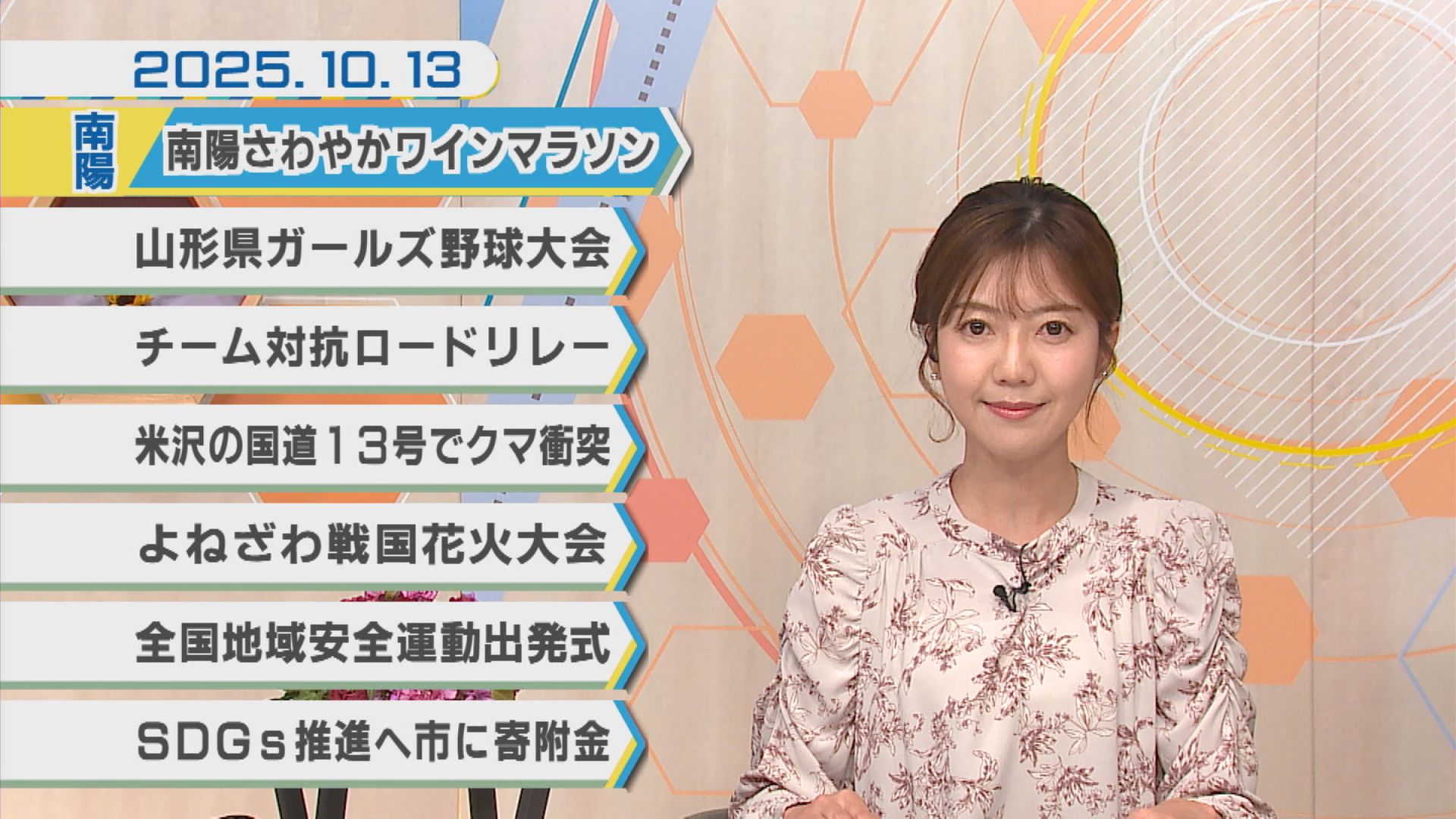 2025.10.14 2025年10月13日Nトピ+プラスNEWS 米沢市 南陽市 高畠町 季節 イベント スポーツ 地域情報 10月13日のNEWSラインナップ①「南陽さわやかワインマラソン」②「山形県ガールズ野球大会」③「よねざわ戦国花火大会&肉の陣」ほか【ミニ企画】FUN!FUN!おきたま・高畠町放課後子ども教室かっぱクラブ SHARE 2025年10月10日Nトピ+プラスNEWS 2025年10月14日Nトピ+プラスNEWS