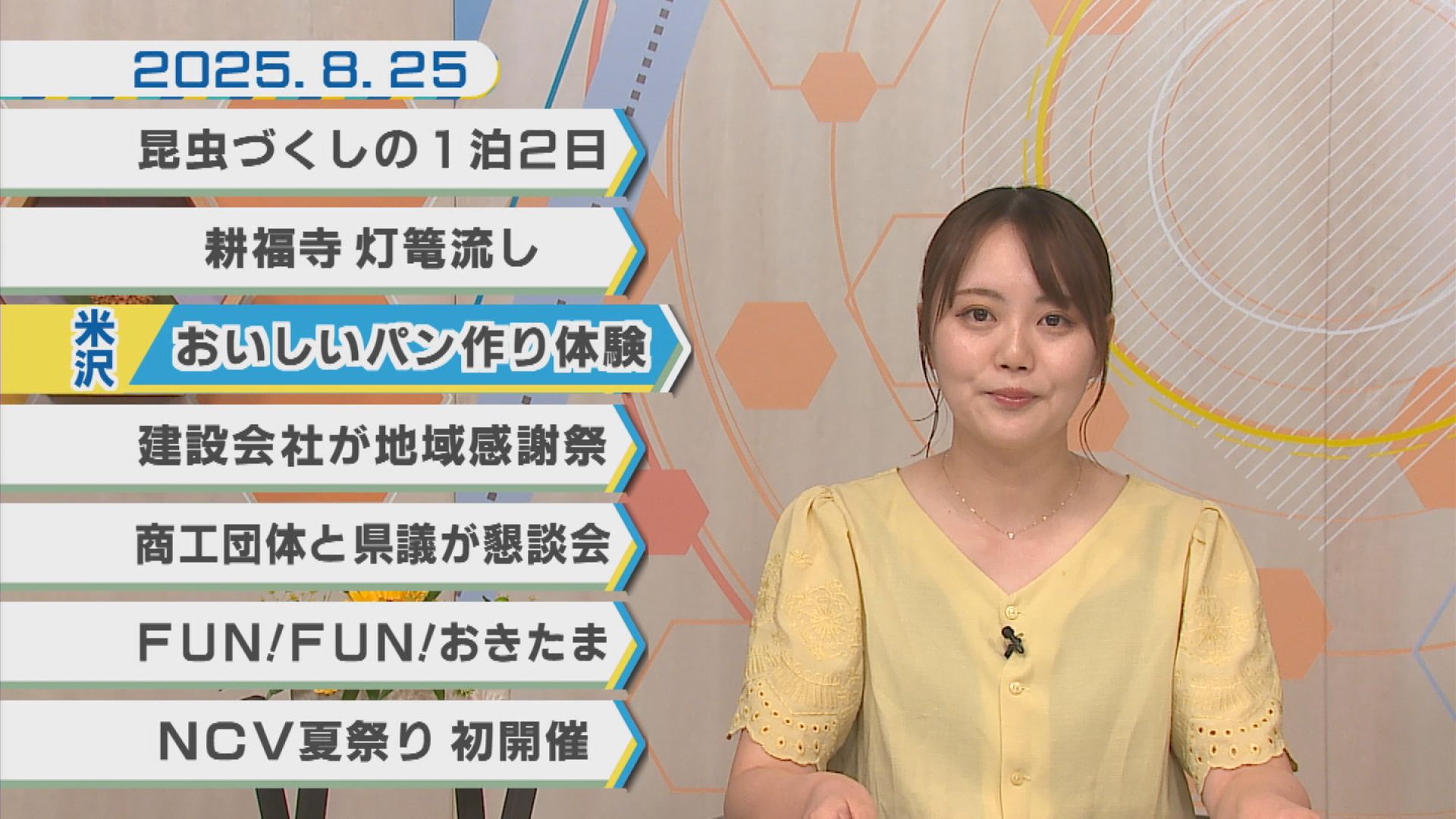2025.08.26 2025年8月25日Nトピ+プラスNEWS 米沢市 高畠町 季節 文化 行政 イベント 地域情報 8月25日のNEWSラインナップ①「昆虫づくしの1泊2日」②「耕福寺灯篭流し」③「おいしいパン作り体験」④「建設会社が地域感謝祭」ほか【ミニ企画】FUN!FUN!おきたま「アンサンブル蓮」 SHARE 2025年8月22日Nトピ+プラスNEWS 2025年8月26日Nトピ+プラスNEWS