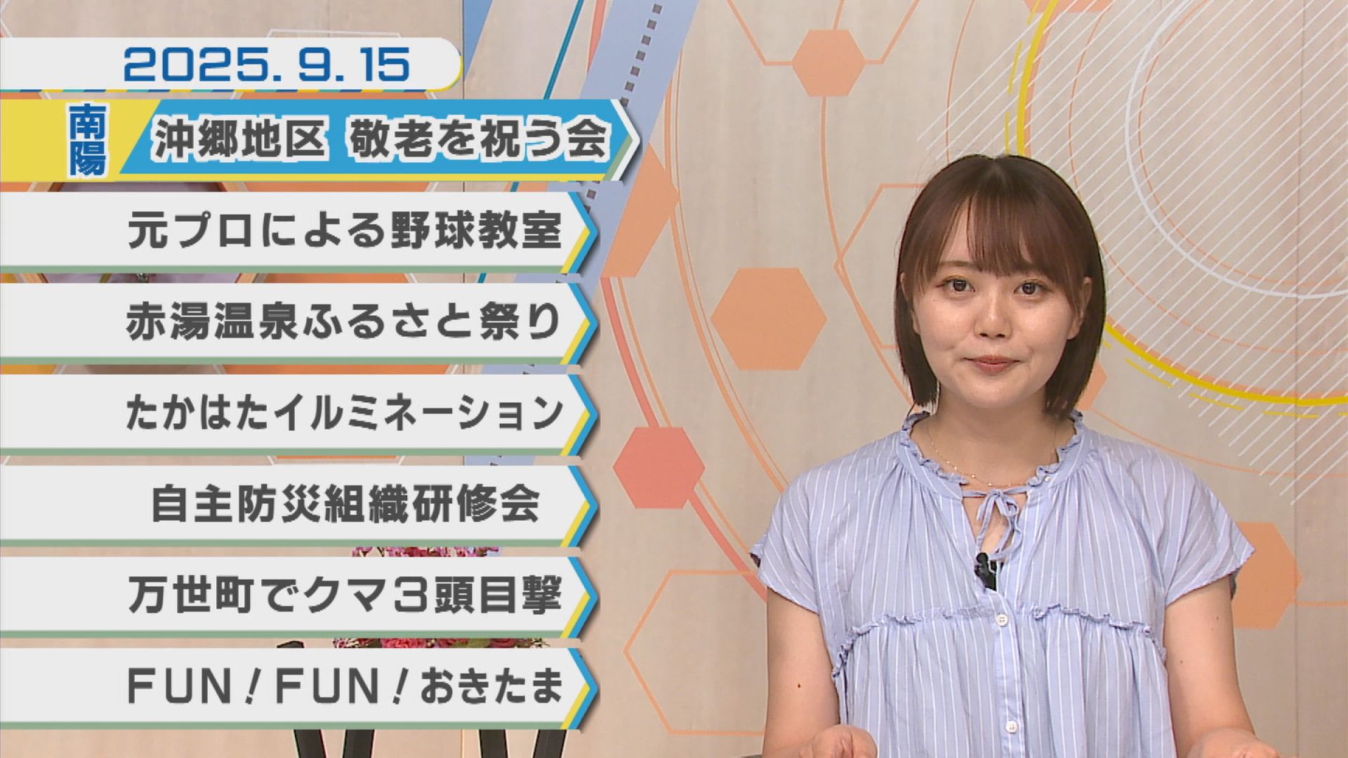 2025.09.16 2025年9月15日Nトピ+プラスNEWS 米沢市 南陽市 高畠町 川西町 季節 文化 イベント スポーツ 地域情報 9月15日のNEWSラインナップ①「沖郷地区敬老を祝う会」②「元プロによる野球教室」③「赤湯温泉ふるさと祭り」④「たかはたイルミネーション」ほか【ミニ企画】FUN!FUN!おきたま「剣道・米沢恒武館」 SHARE 2025年9月12日Nトピ+プラスNEWS 2025年9月16日Nトピ+プラスNEWS