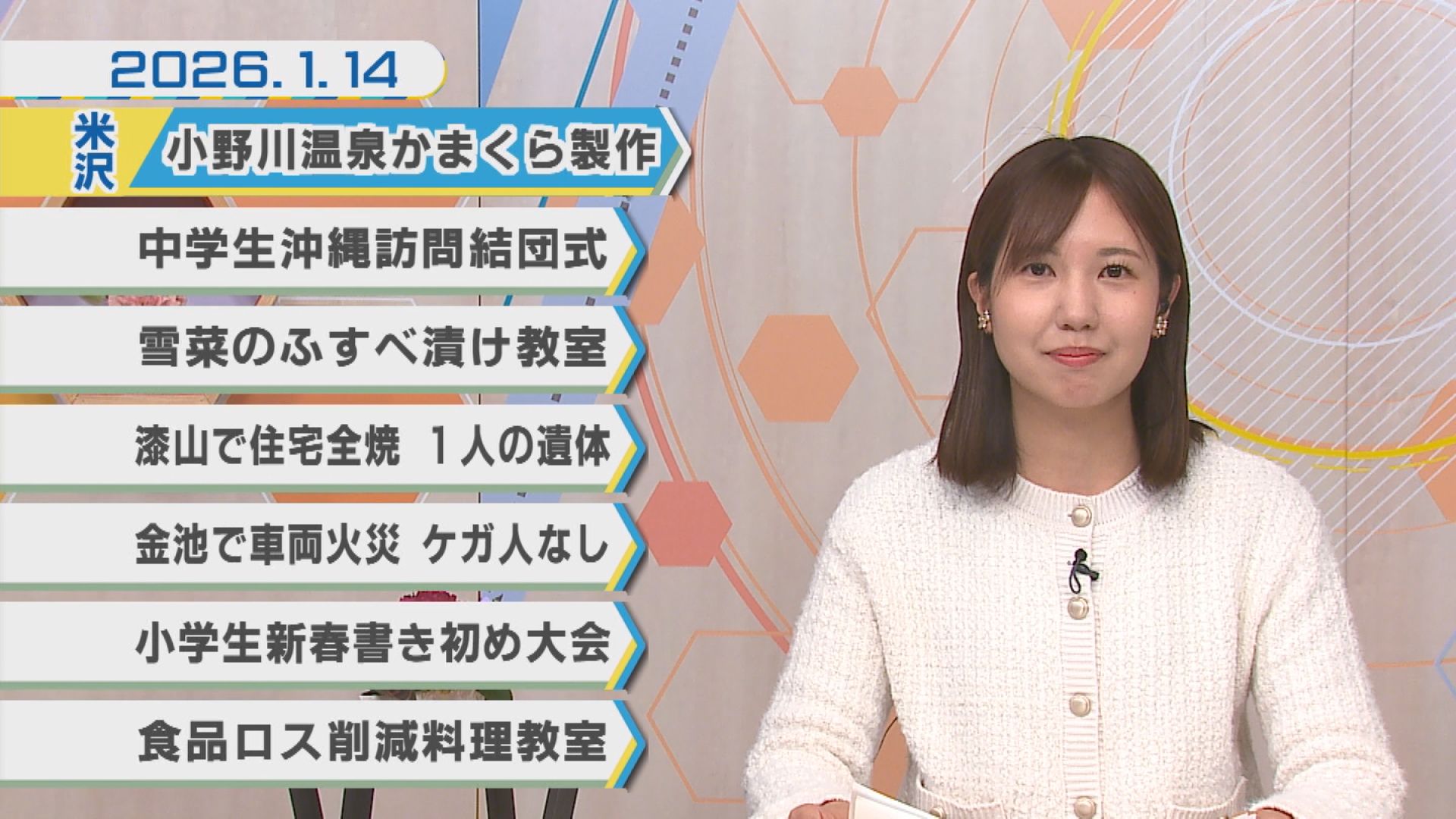 2026.01.15 2026年1月14日Nトピ+プラスNEWS 米沢市 南陽市 川西町 季節 文化 学校 動画 地域情報 1月14日のNEWSラインナップ①「小野川温泉かまくら製作」②「中学生沖縄訪問結団式」③「雪菜のふすべ漬け教室」ほか【ミニ企画】名探偵チャネルヒカリの解いてQ SHARE 2026年1月13日Nトピ+プラスNEWS 2026年1月15日Nトピ+プラスNEWS