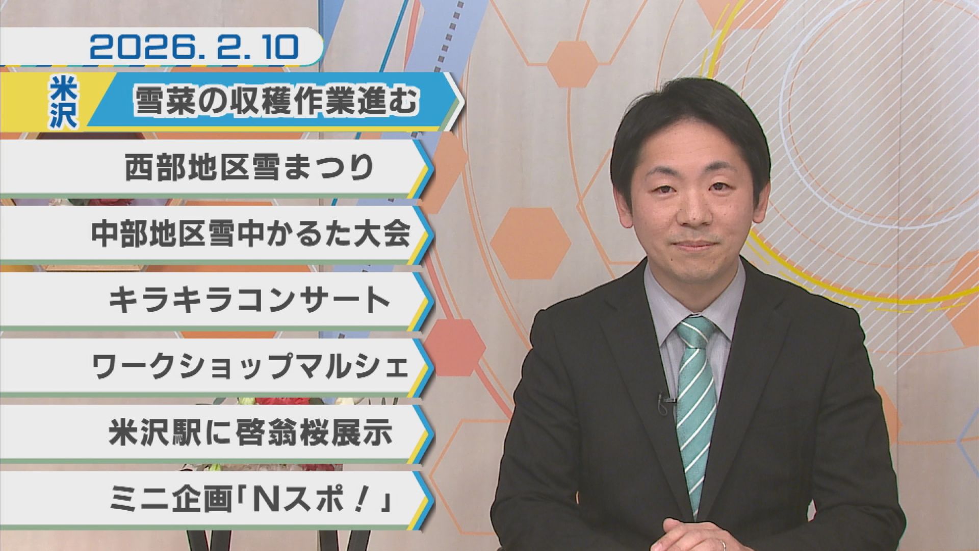 2026.02.11 2026年2月10日Nトピ+プラスNEWS 米沢市 高畠町 季節 文化 動画 イベント スポーツ 地域情報 2月10日のNEWSラインナップ①「雪菜の収穫作業進む」②「西部地区雪まつり」③「中部地区雪中かるた大会」④「キラキラコンサート」ほか【ミニ企画】週末のイベント情報 SHARE 2026年2月9日Nトピ+プラスNEWS 2026年2月11日Nトピ+プラスNEWS