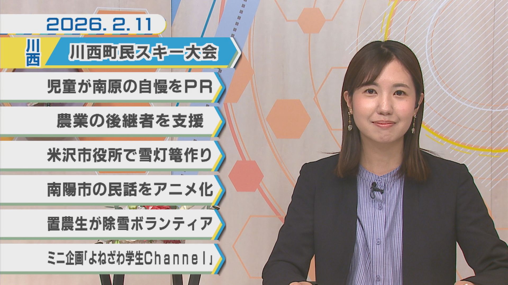 2月11日のNEWSラインナップ①「川西町民スキー大会」②「児童が南原の自慢をPR」③「農業の後継者を支援」④「米沢市役所で雪灯篭作り」ほか【ミニ企画】よねざわ学生channel