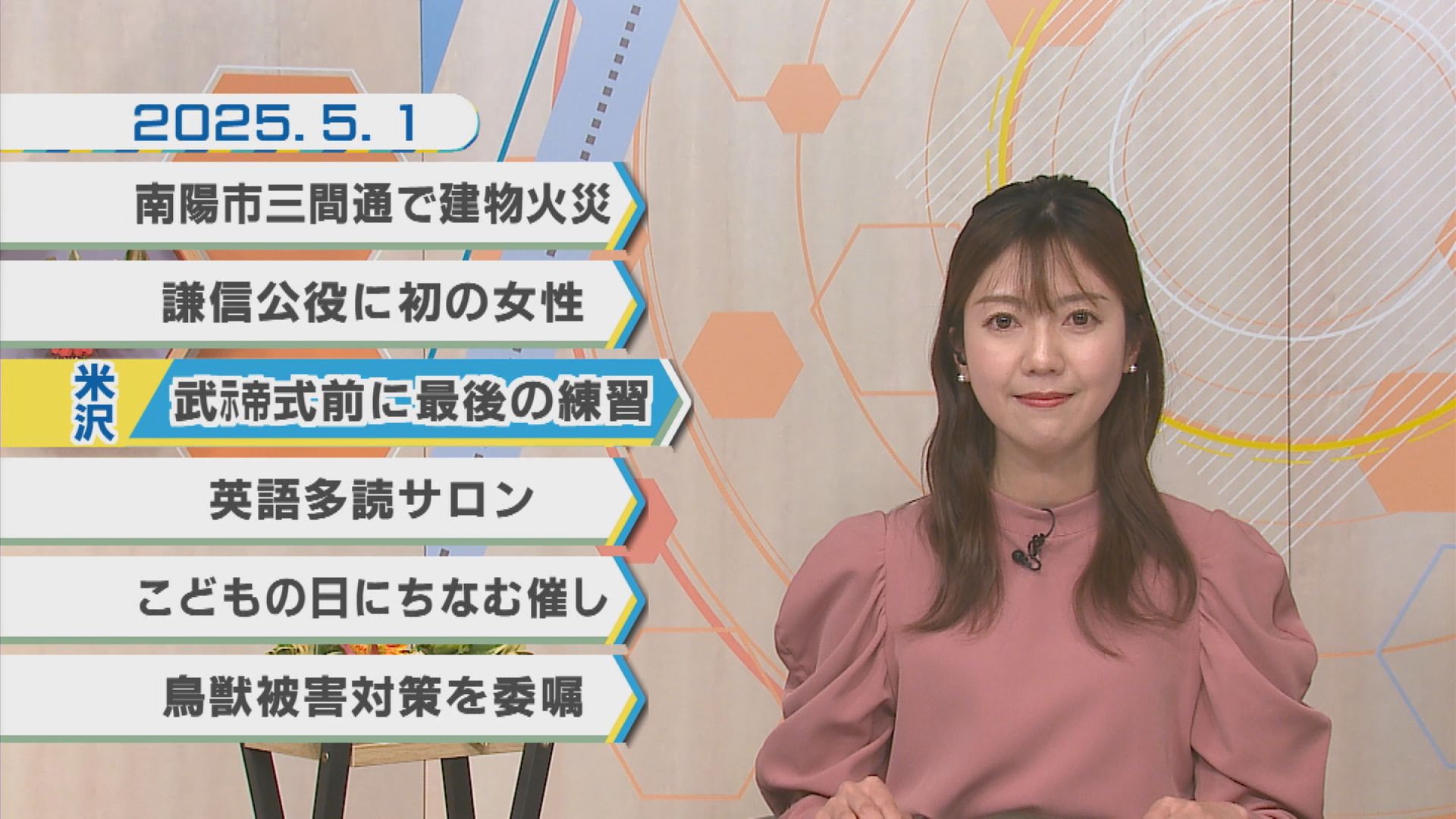 5月1日のNEWSラインナップ①「南陽市三間通で建物火災」②「謙信公役に初の女性」③「武禘式前に最後の練習」④「英語多読サロン」ほか【特集】小学生がヘアドネーション