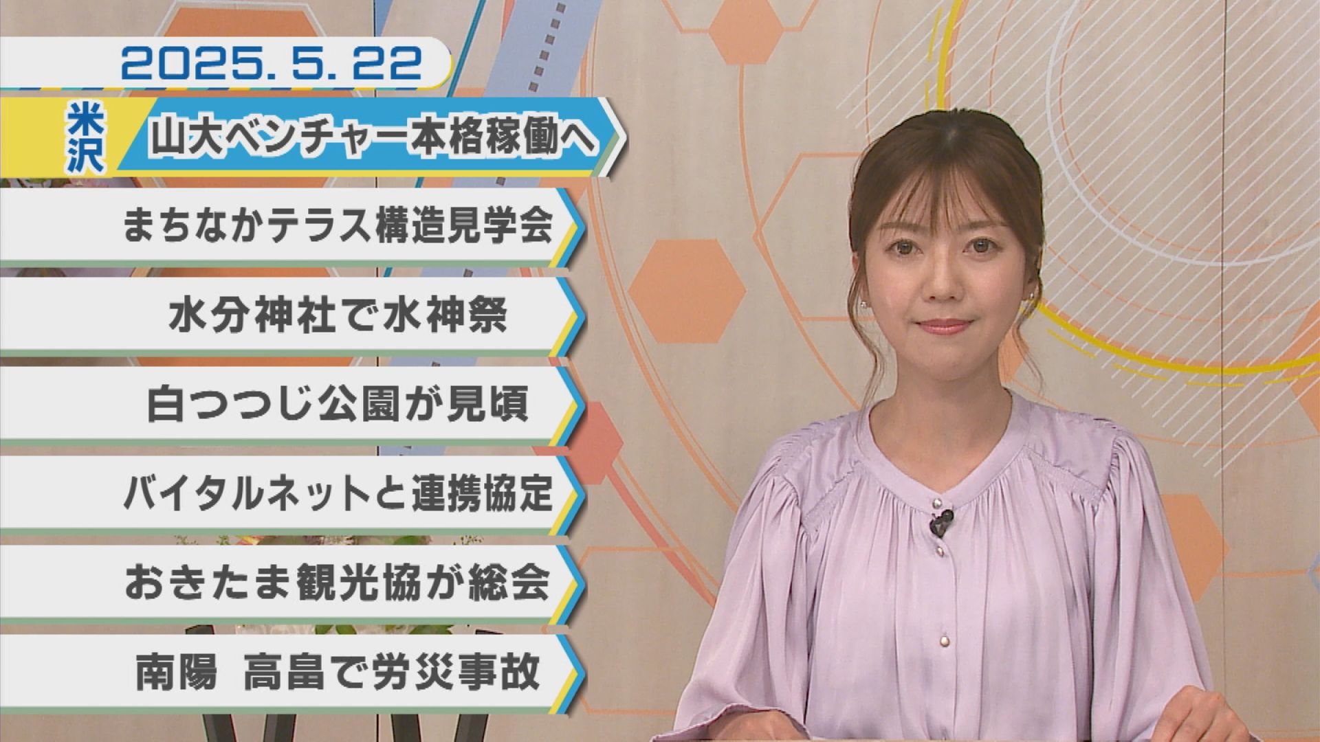 5月22日のNEWSラインナップ①「山大ベンチャー本格稼働へ」②「まちなかテラス香合見学会」③「水分神社で水神祭」ほか【特集】「命を見つめて演じる人情噺 古川孝さん」