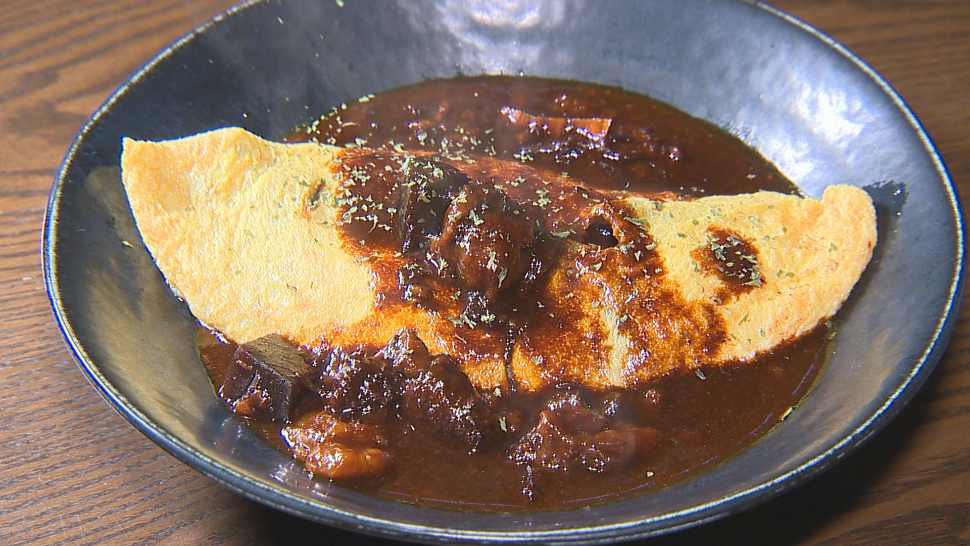 ふんわりぷるぷる触感の玉子焼き、どて煮とオムレツを組み合わせた料理など